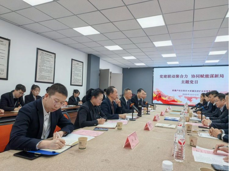 為深入學(xué)習(xí)貫徹新時(shí)代黨的治疆方略,深化黨建引領(lǐng)下的戰(zhàn)略協(xié)作,2025年12月12日下午,新疆國(guó)源礦業(yè)發(fā)展集團(tuán)有限公司與新疆產(chǎn)權(quán)交易所在國(guó)源集團(tuán)一樓交易大廳,聯(lián)合舉辦“黨建聯(lián)動(dòng)聚合力 協(xié)同賦能謀新局”主題黨日活動(dòng),雙方黨員干部齊聚一堂,以黨建為紐帶凝聚發(fā)展共識(shí),以務(wù)實(shí)舉措共繪合作藍(lán)圖。