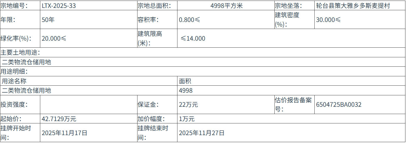 LTX-2025-33 號地塊:2025年11月17日 10時00分 至 2025年11月27日 12時00分;