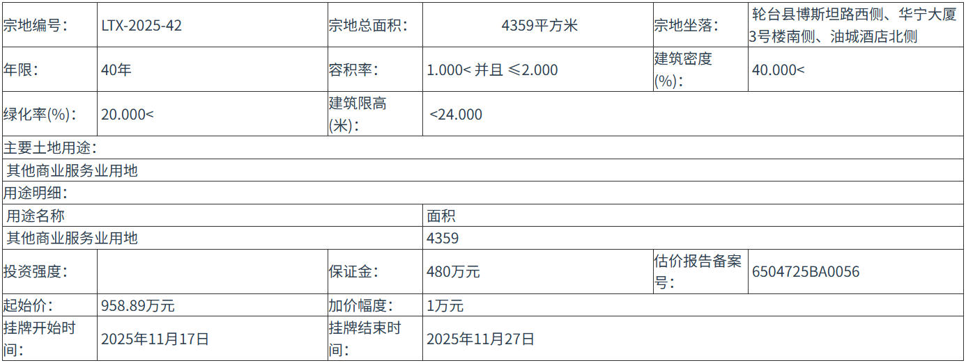 LTX-2025-42 號地塊:2025年11月17日 10時00分 至 2025年11月27日 12時00分;